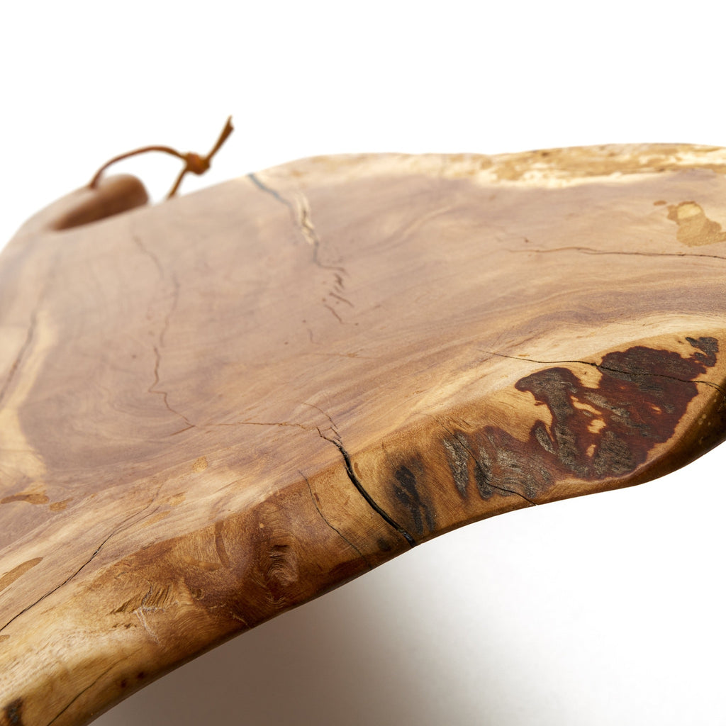 After the fire scorched tree was sawn into rough planks, the boards were air-dried for 7 years before being hand-shaped and crafted into the Limited Edition Rustic Live Edge Serving Board that we are pleased to offer you. The grain and figure in this roughly 200 year old olive wood is truly spectacular.
